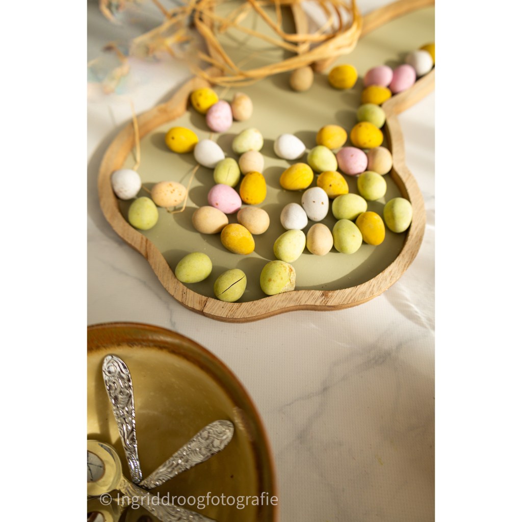 Ik vind het wel weer een goede rede om de tafel leuk aan te kleden met paasversieringen. (ook weer een rede om wat nieuws te kopen)